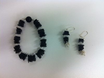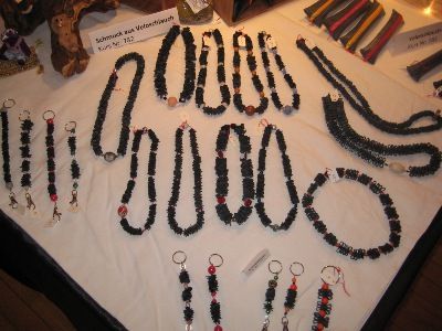Aus gebrauchten Veloschläuchen lassen sich auch Halsketten, Armbänder, Ohrringe und Schlüsselanhänger herstellen. Mit verschiedenen Perlen und Steinen kann man dem Schmuck den nötigen Pepp verleihen.