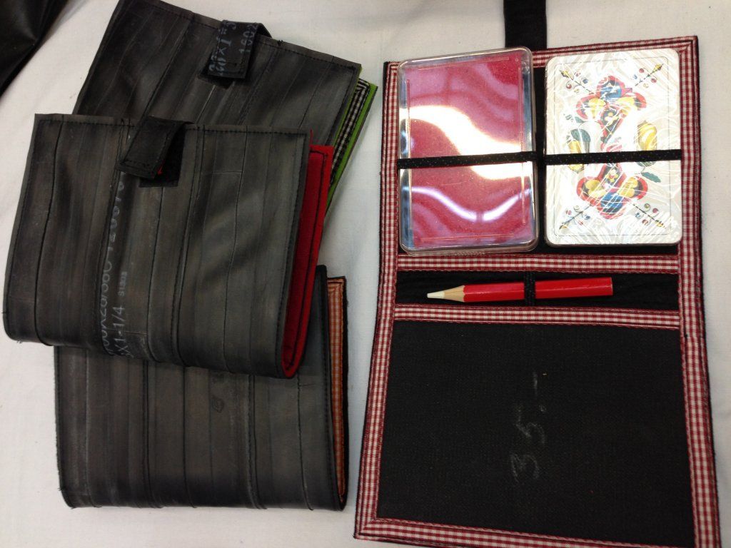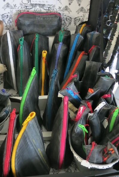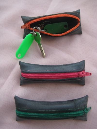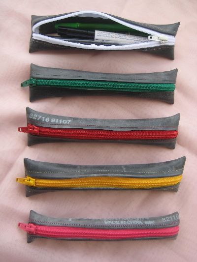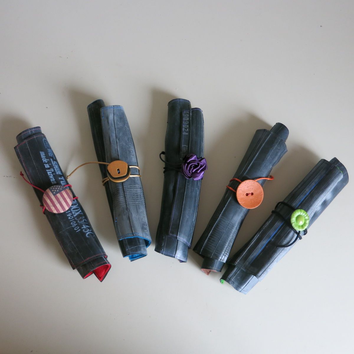 Seit einigen Jahren verarbeite ich gebrauchte Veloschläuche zu Etuis, Schmuck und Taschen.
