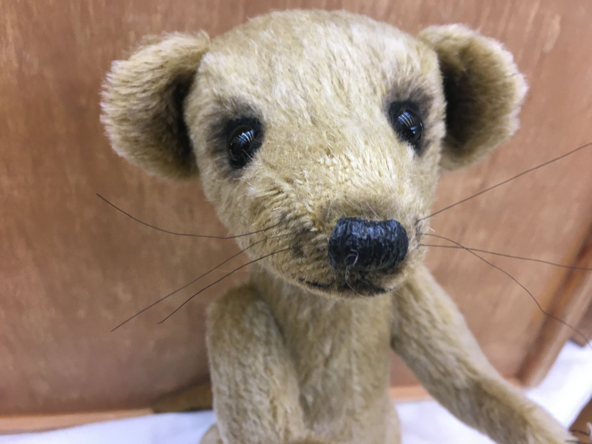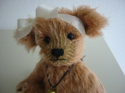 Material: Webpelz aus Mohair oder Plüsch/ Füllmaterial meistens Acrylwolle/ Augen sind gegossene Glasaugen
